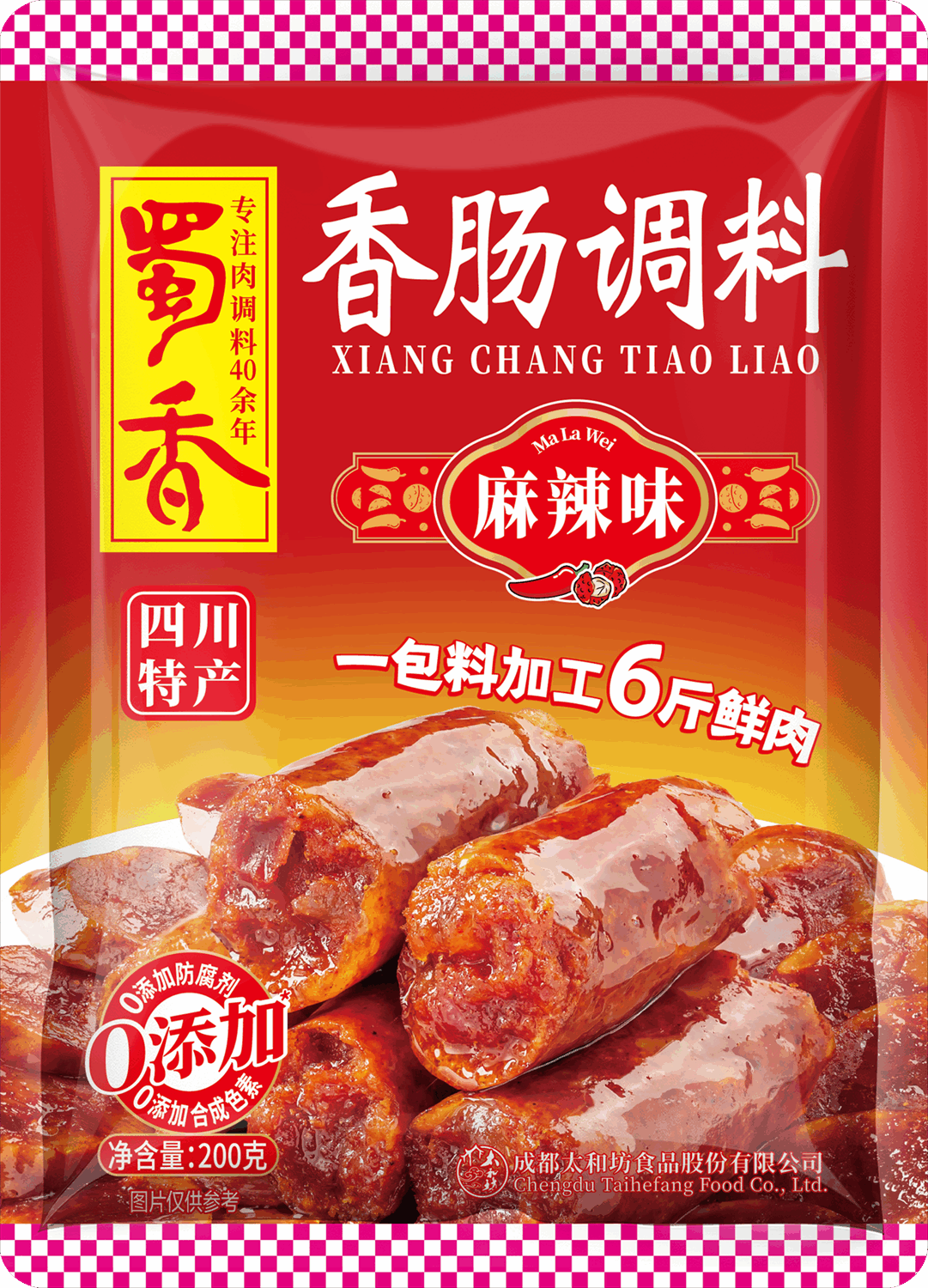 香肠腊肉调料是为调制香肠、腊肉等传统腌制肉制品而设计的复合调味品,主要以辣椒、花椒、 胡椒、食盐、甜面酱、豆豉及多种调料为主要原料,按一定配方和工艺加工制成。 香肠腊肉调料将传统配方与现代生产技术相结合,能够精准把控产品的麻度、辣度、甜度、 咸度、水分含量等指标,确保调味料的风味纯正、口感丰富。此外,公司创新性地将豆豉、甜面酱 等发酵调味品以科学配比融入到多种风味的腊肉、酱肉调料配方当中,借助多菌种协同发酵的作用, 进一步优化和丰富了产品的口感层次,打造出独具品牌辨识度的调料品种。