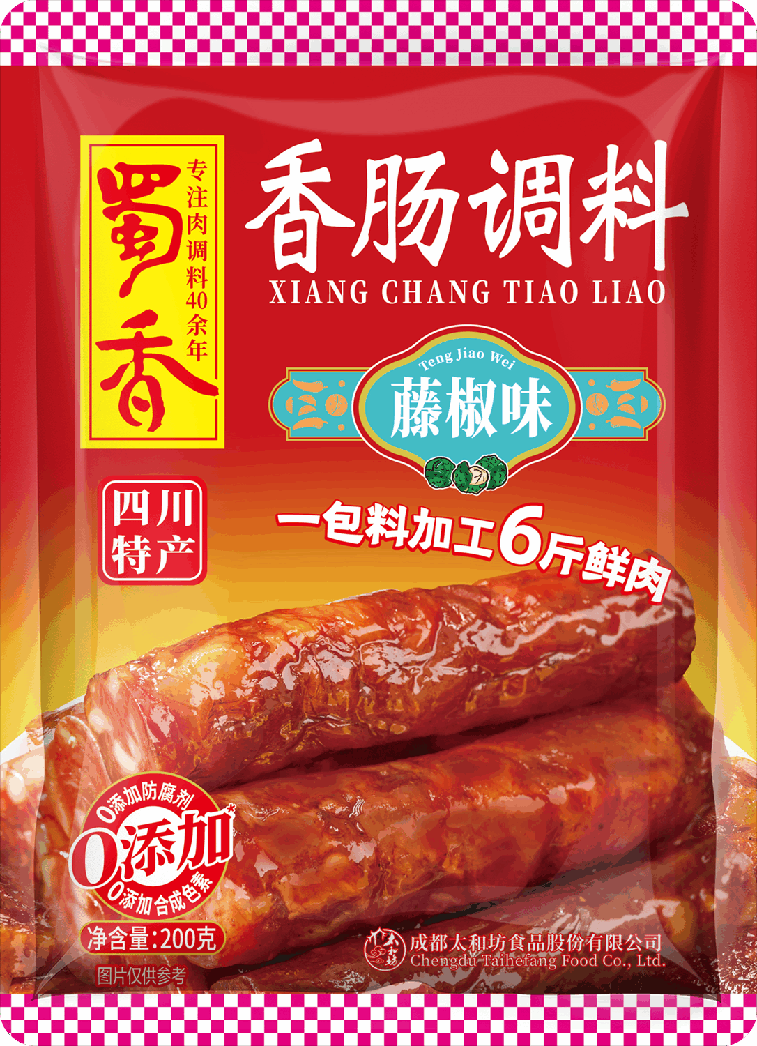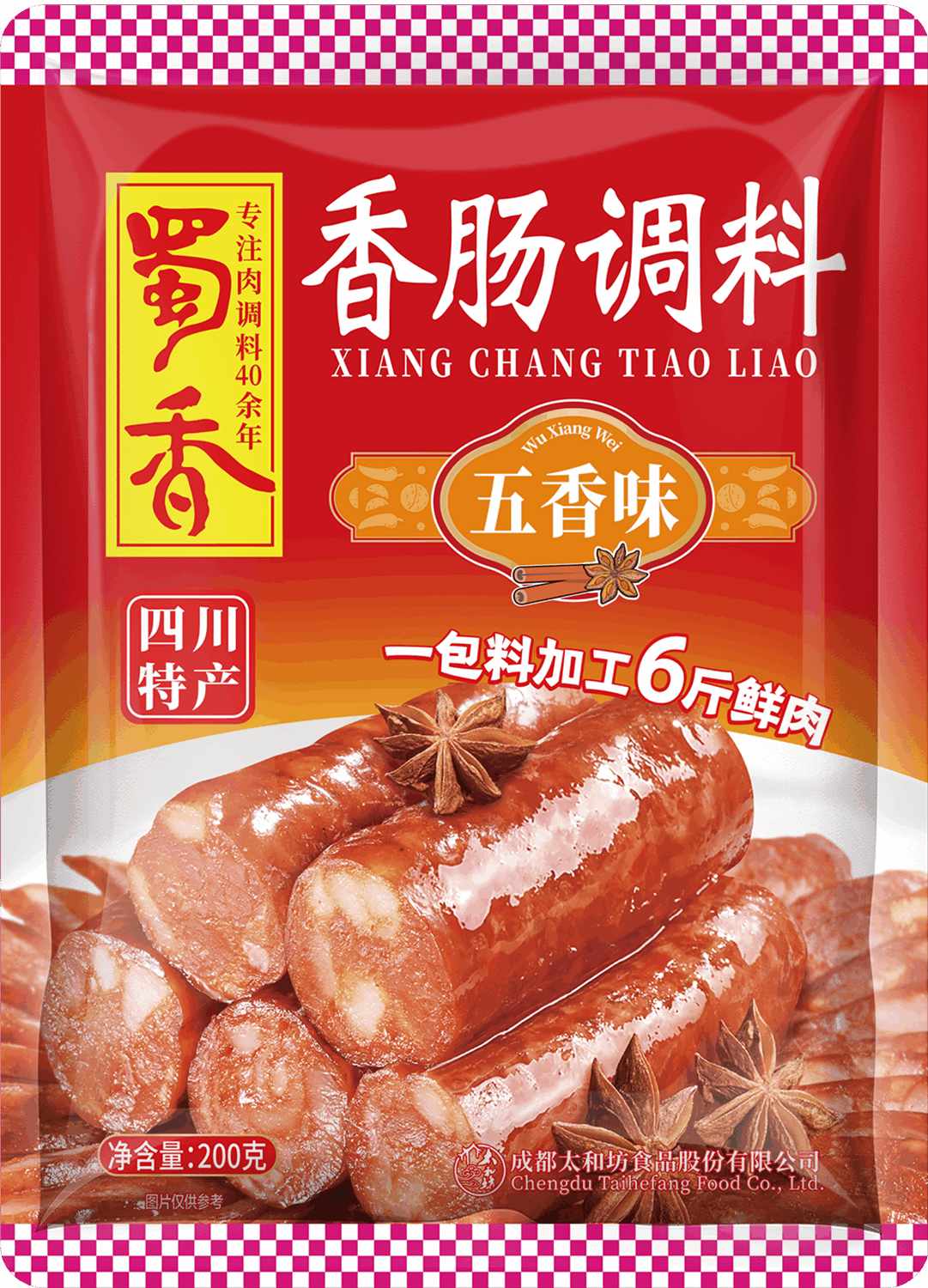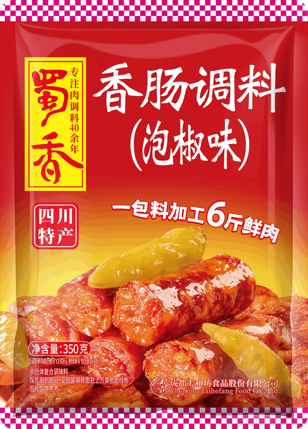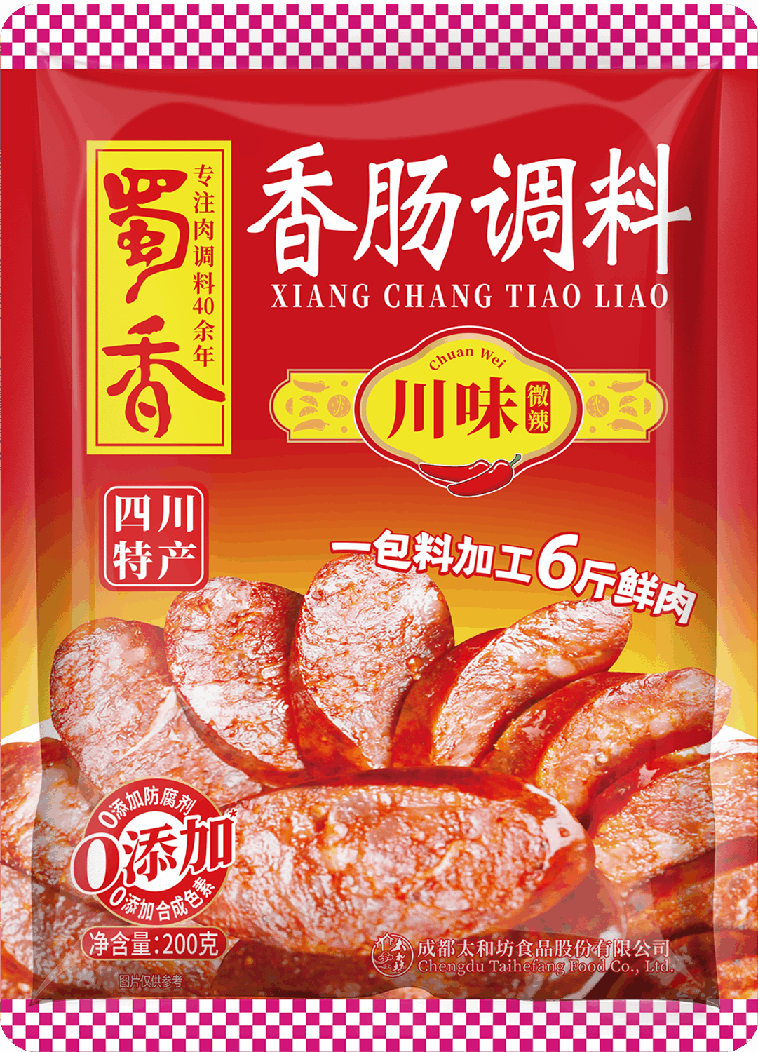 以使用当季新鲜花椒、辣椒,简单原料复合为四川特有味道。一包料6斤肉、味香、料足,是四川人记忆中独有的年味。“蜀香”品牌因发明和缔造了冬季调料这个产业而享誉四方,成为行业标杆,获得四川特产称号。